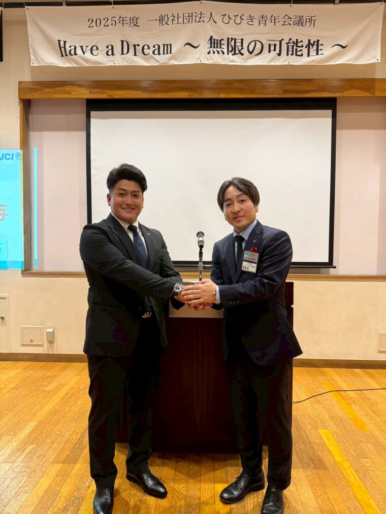 我々の理事長であります竹内 和久君と九州地区協議会会長であります和田会長ををお招きし、